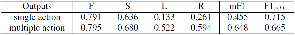 이처럼 각각의 action은 작은 explanation set을 갖는다고 생각할 수 있고, joint prediction task는 factorial classification problem으로 고려될 수 있다. 물론 다양한 edge case들이 존재할 수 있지만, 이미 존재하는 explanation과 독립적이라면 그냥 간단하게 추가해 주면 된다.